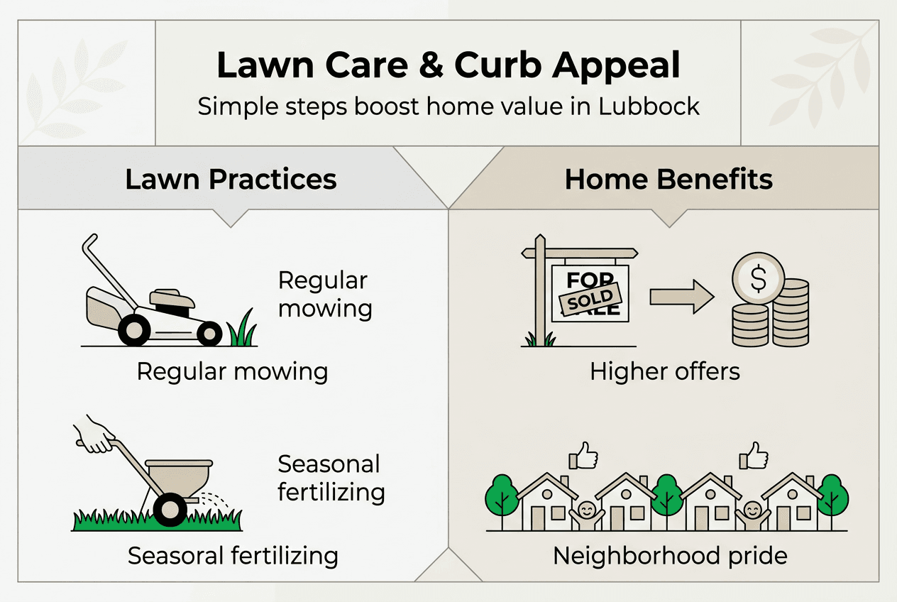 | Lawn care drives property value | Well-maintained lawns create powerful first impressions that increase home marketability and sale prices in Lubbock. |