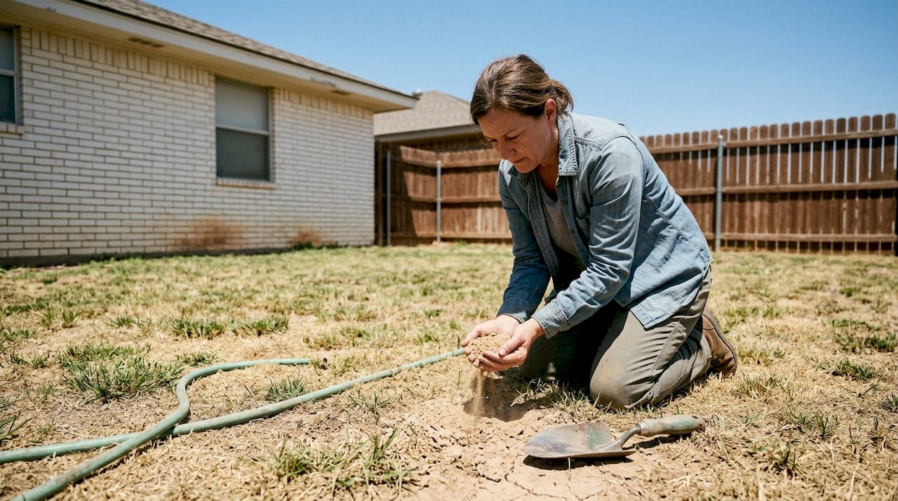 Watering strategy makes or breaks lawn health in West Texas. Deep, infrequent watering, delivering 1 to 1.5 inches weekly in early morning sessions, encourages roots to grow deeper and become more drought resistant. Shallow daily watering creates weak, surface-level roots that struggle during heat stress. Early morning timing minimizes evaporation and allows grass blades to dry before nightfall, reducing fungal disease risk.