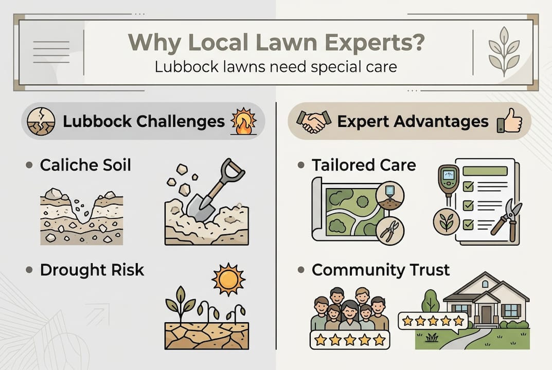 As research on regional soil expertise makes clear, effective lawn care requires providers who are familiar with specific local soils and seasons. Lubbock's caliche and winter prep needs are not optional knowledge for anyone claiming to be a local expert.